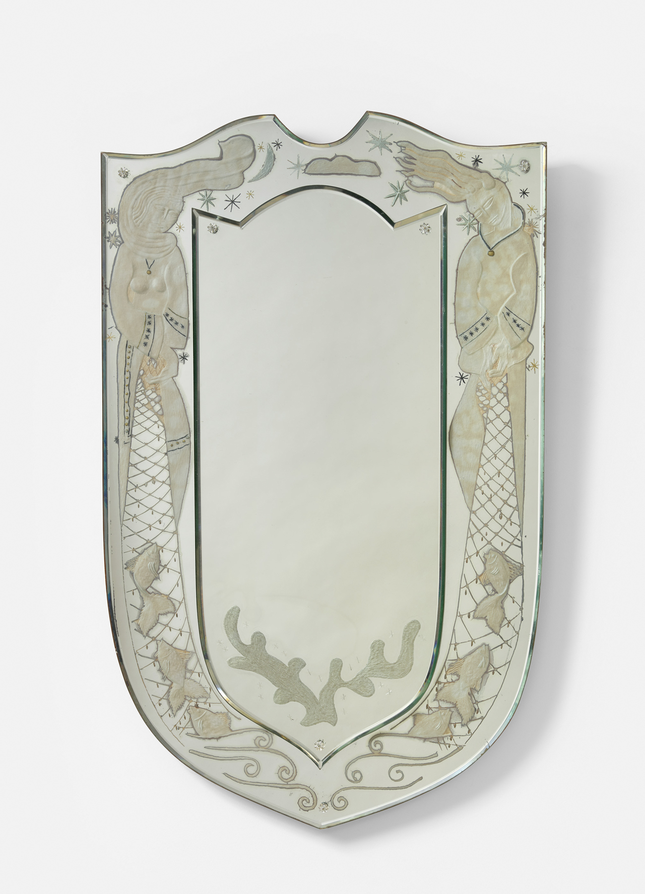 en verre gravé à l’acide à décor de femmes et de poissons,