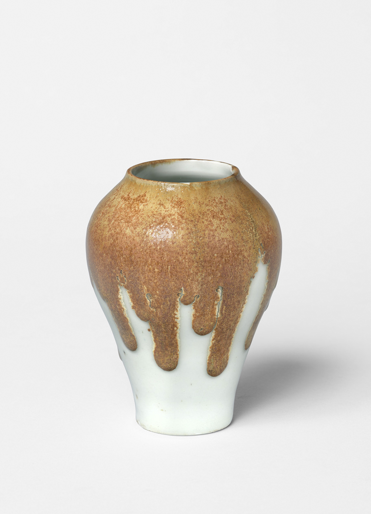 En porcelaine émaillée blanc et brun, signé « AUG » sous la base