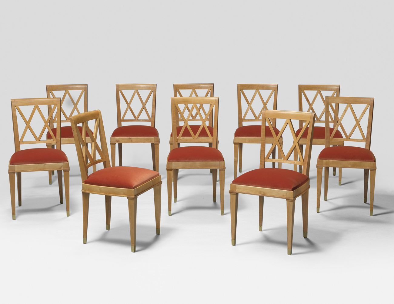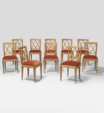 Ensemble de 10 chaises Croisillon, circa 1945