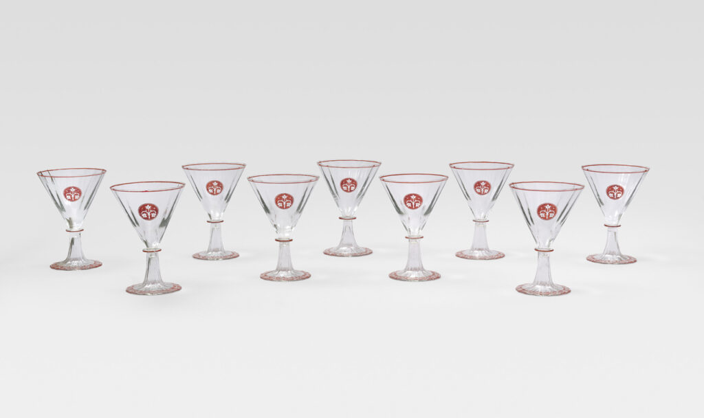 Ensemble de neuf verres à pied, circa 1930
