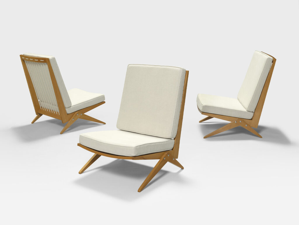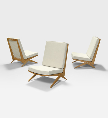 Anonyme, Ensemble de trois fauteuils compas, circa 1950 Galerie Jacques Lacoste> Autres créateurs, après 1950> Anonyme, Ensemble de trois fauteuils compas, circa 1950> ANONYME Ensemble de trois fauteuils compas, circa 1950 En hêtre et cordes Dimensions : H 90 x L 54,5 x P 90 cm Réf : A219 Prix sur demande PARTAGER RETOUR