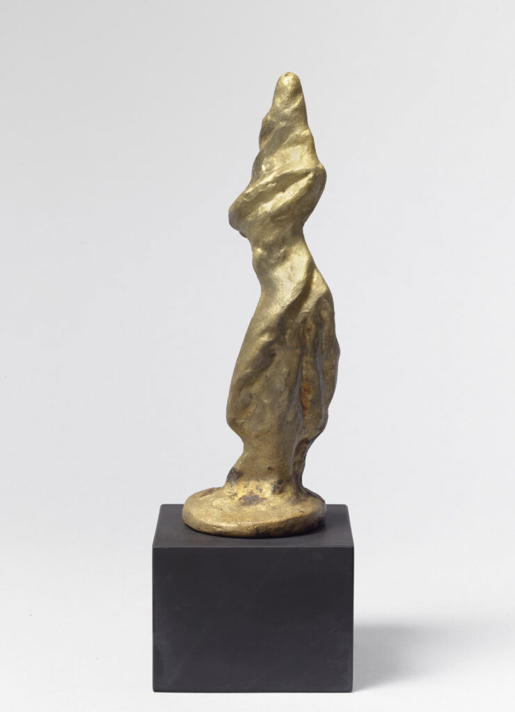Modèle drapé, en bronze à patine dorée sur socle en marbre noir (non d’origine)