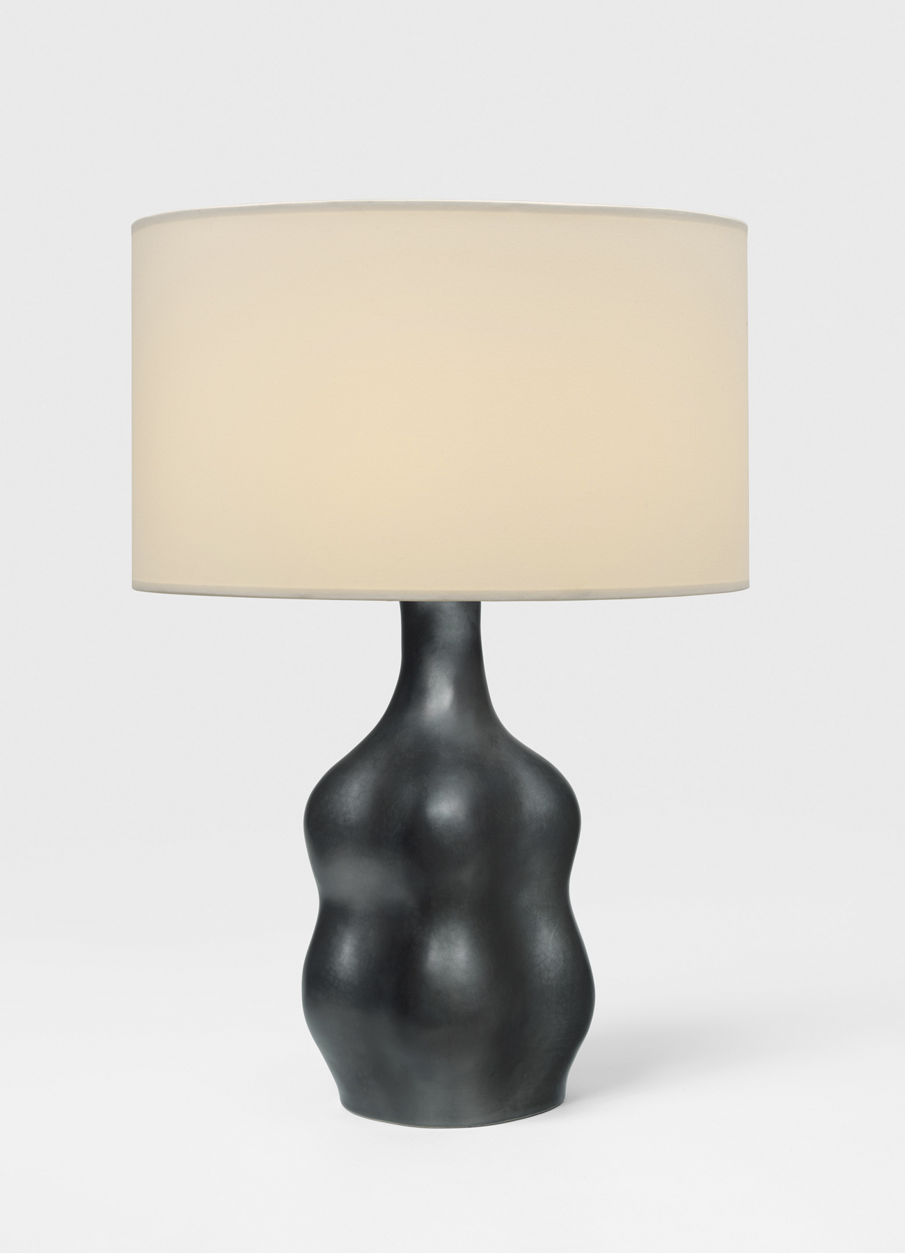 In black glazed ceramic,