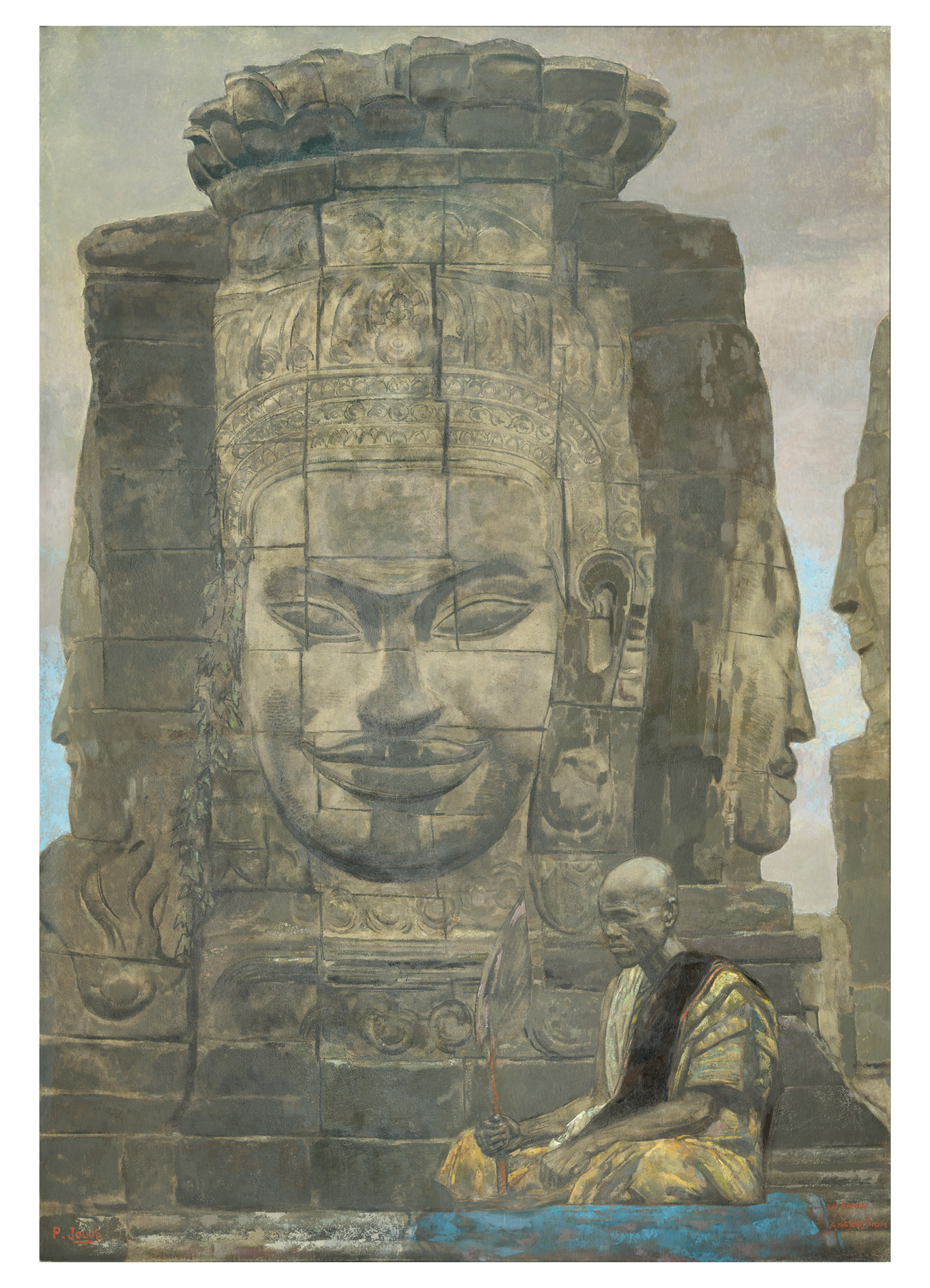 Signed “P.Jouve” lower left and titled “Le Bayon Angkor Thom” lower right