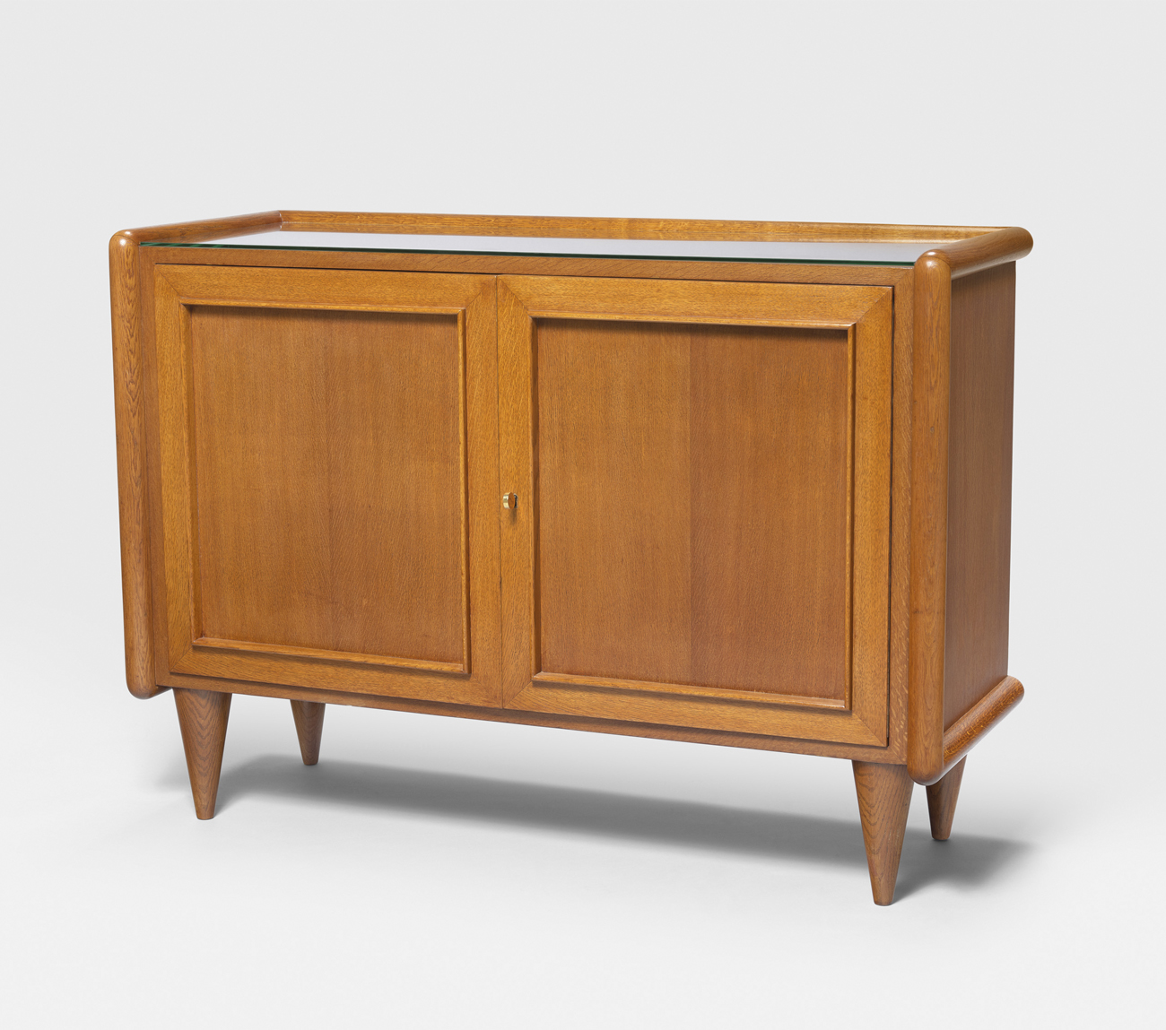 En chêne à deux portes et dalle de verre, serrure en laiton