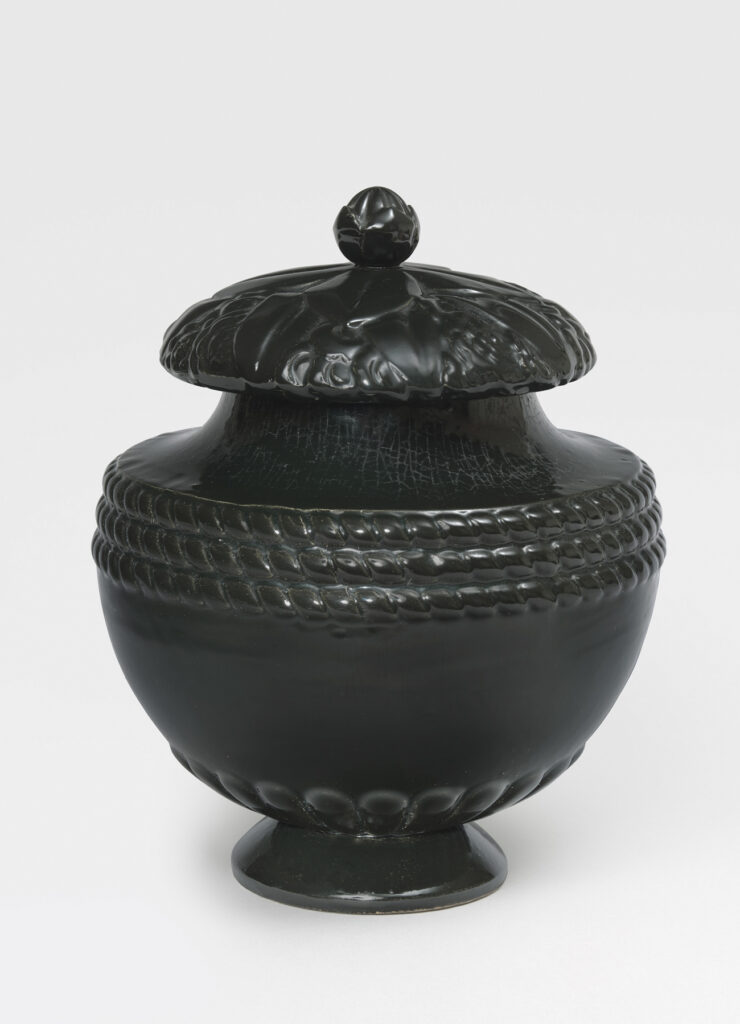 En céramique émaillée noire à décor de panier fleuri sur le couvercle