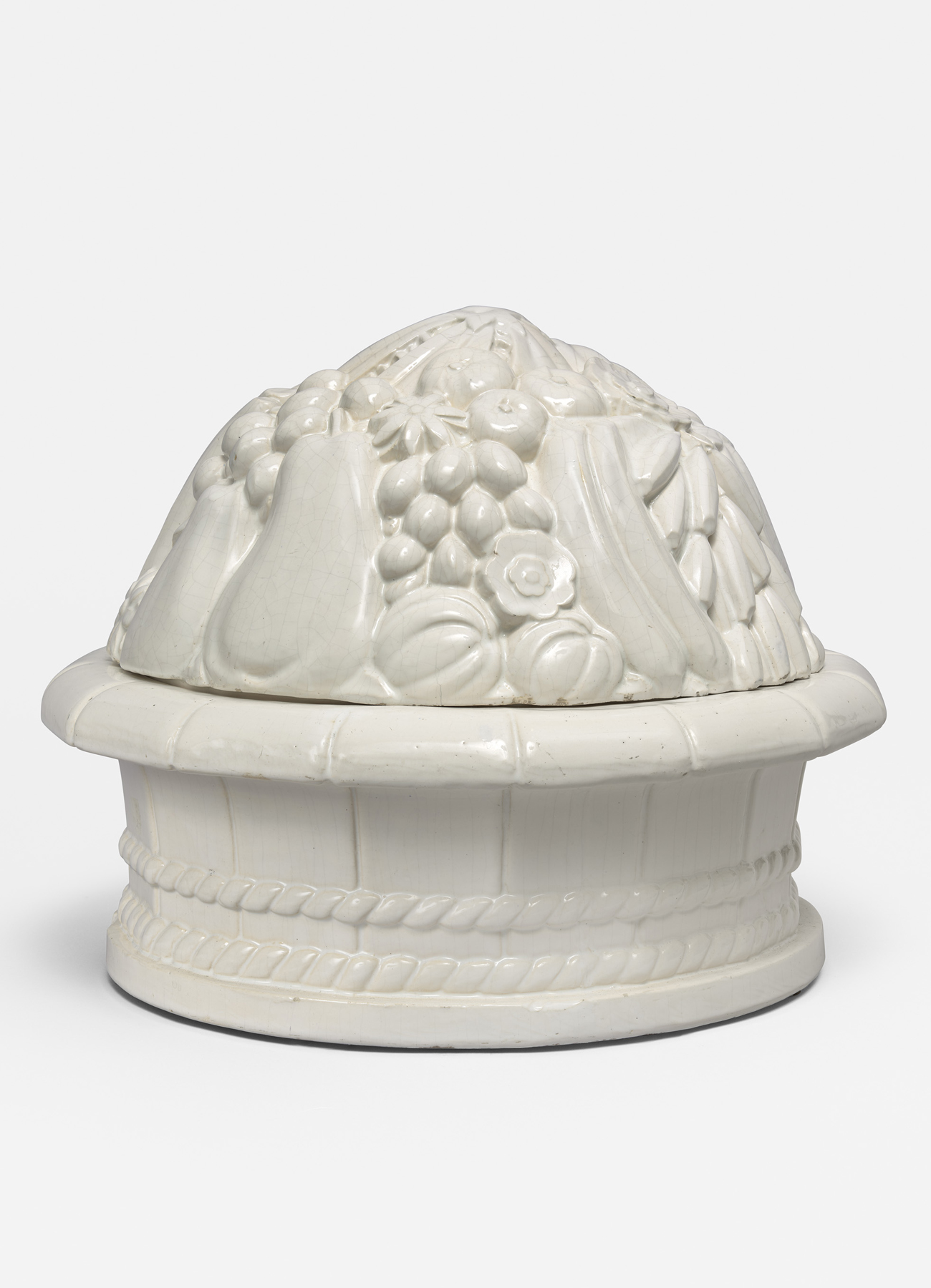 En céramique émaillée blanche en forme de corbeille de fruits et légumes